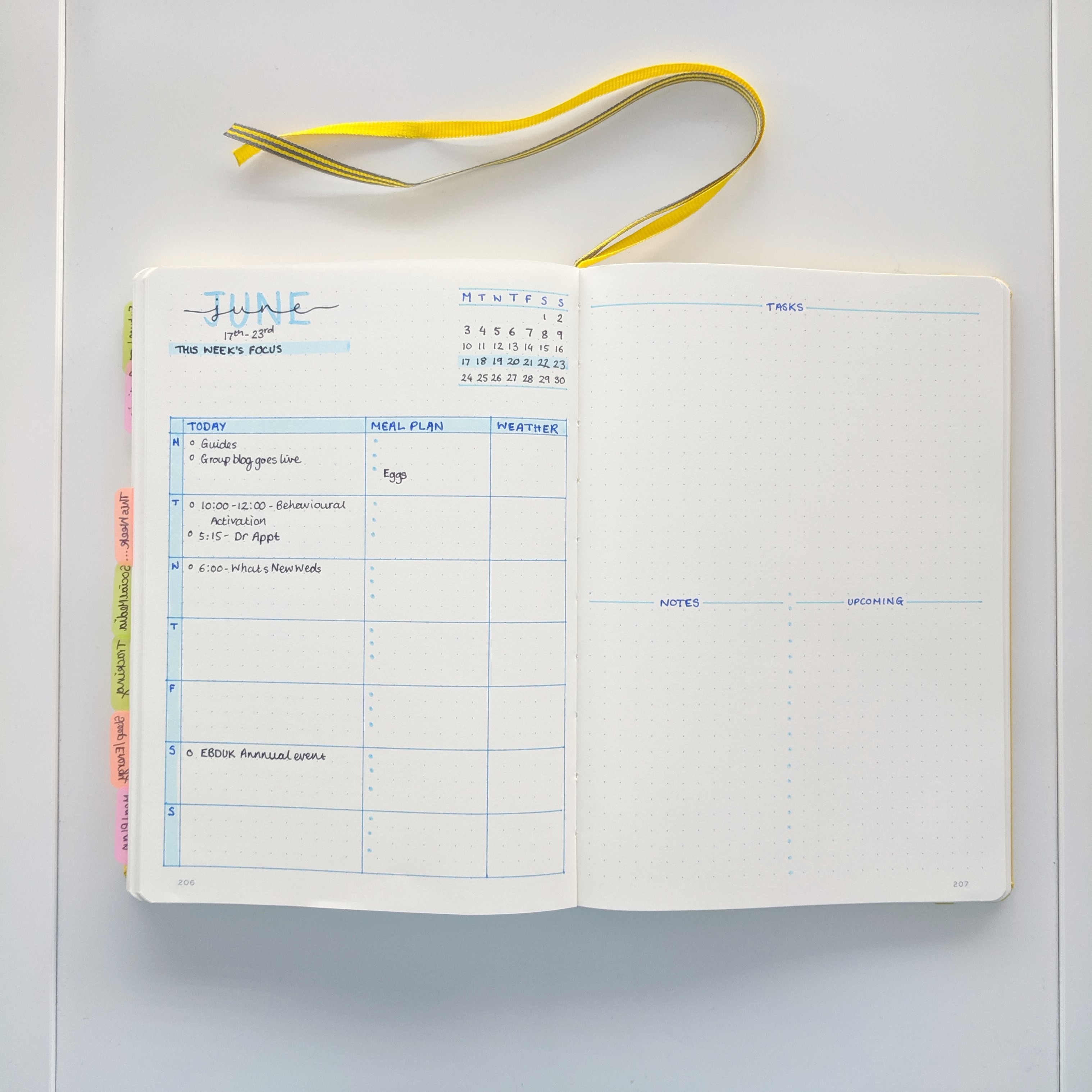 This overview worked well as it gave me a glipse of where we were in the month, the events for the week, a space to be aware of what was coming up, and space for notes and tasks that needed to be done that week. This was then followed by the dailies where I would record all sorts of things and move tasks from the weekly onto the appropriate day. Yes there are mistakes but that’s just reality.