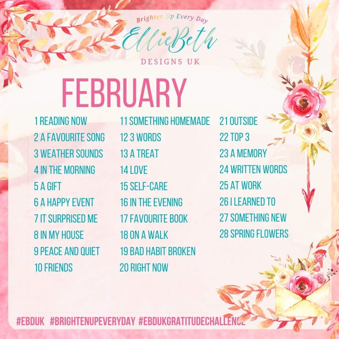 Gratitude is something that took me a while to get to grips with but is something that comes up again and again when you look at stuff to do with wellness. I tried incorporating it into my bullet journal but struggled with. In November 2018 Elliebeth Designs UK started a monthly gratitude challenge. Each day has a prompt with a new set of prompts each month.